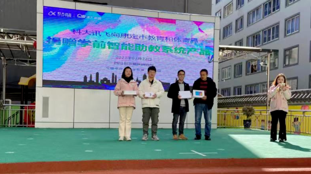 3月22日,正值春分,四川省甘孜州推普工作收到一份特殊禮物。科大訊飛股份有限公司在康定市和瀘定縣分別舉辦“助力甘孜州國家通用語言文字普及和學(xué)前學(xué)普”捐贈公益活動,向康定市第一幼兒園和瀘定縣瀘橋鎮(zhèn)幼兒園合計捐贈兩套教師普通話訓(xùn)練平臺和四套學(xué)前智能助教系統(tǒng)。這些產(chǎn)品覆蓋兩所幼兒園的8個班級,100多位教師。